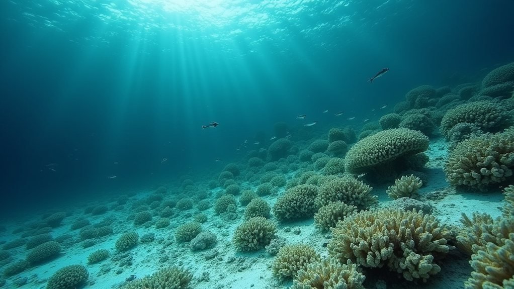 Revitalizing coral reefs isn’t just a noble aspiration; it’s a necessity that demands immediate action. Marine Protected Areas (MPAs) serve as lifeguards, shielding reefs from overfishing and pollution, while ambitious initiatives aim to restore coral cover from a mere 2% to 25%. Think of coral gardening as nature’s version of landscaping—outplanting and nurturing resilient corals. Innovative technologies, like solar-powered buoys and autonomous drones, monitor reef health and remove pesky invasive species. With global commitments and local stressor reductions, the tide can turn. It’s critical to remember that coral reefs provide habitats for 25% of all marine life. Moreover, nearly 1 billion people rely on coral reefs for their livelihoods, highlighting their immense importance. It’s time to roll up sleeves and plunge into action—after all, coral reefs are the party hosts of the ocean! Coral reefs are facing multiple threats, including warming seas, acidification, and pollution, underscoring the urgency of integrated ocean protection strategies.