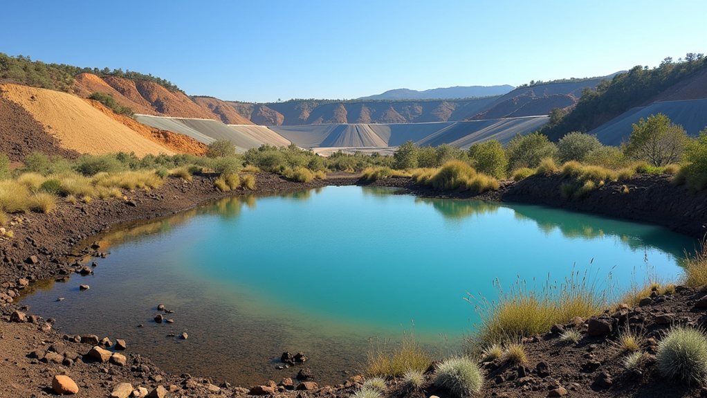 In June 2024, the heap-leach failure at Eagle Gold Mine sparked alarms over cyanide and mercury spills, highlighting serious management flaws. Poor drainage, steep slopes, and a lack of monitoring led to a disastrous liquefaction event. Cyanide levels in nearby Haggart Creek approached danger zones for fish, threatening local ecosystems. Efforts to address this include a multi-process treatment plant and community engagement for habitat restoration. Stick around to uncover the ongoing cleanup initiatives that are making waves!