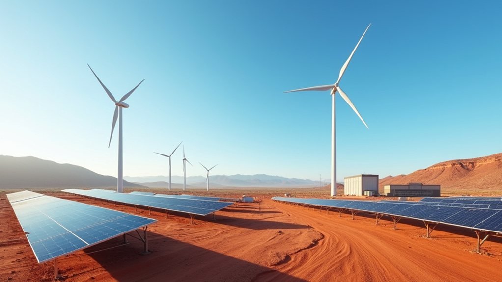 Even with the electrifying tales of renewables enchanting mining boardrooms, companies like Fortescue and Bellevue Gold are turning stories into action by pioneering massive off-grid renewable infrastructures. Imagine it: solar panels sunbathing by day, wind turbines waltzing by night, all orchestrated by a high-voltage director to create a clean energy symphony. Their off-grid systems, independent from traditional grids, promise a 24-hour power reality, laughing in the face of fossil fuels. Fortescue’s focus on employing advanced technologies reflects its strategic shift towards sustainable green energy, aiming to minimize environmental impact. Battery storage backs them up like a loyal sidekick, ensuring operations don’t miss a beat. Unlike fossil fuels, renewable energy sources such as solar and wind produce little to no greenhouse gas emissions during operation, making them a cleaner long-term solution for energy-intensive industries. Adding to the momentum, Fortescue’s initiative is expected to deliver $US100 million in annual savings by fully transitioning to renewable energy.