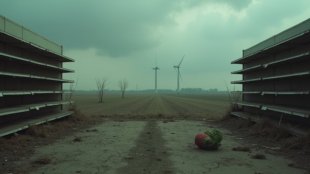 The UK could be skating dangerously close to a food security crisis by 2026, like a tightrope walker with a wobbly pole. With almost half of its food imported, the nation’s reliance on fragile global supply chains and unpredictable weather patterns is like setting up a tent in a hurricane zone. Add a sprinkle of geopolitical tensions, and voilà, you have a perfect recipe for chaos. Curious about strategies to avoid this potential food fight? Keep exploring.